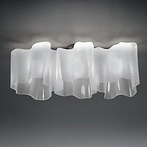 The Artemide Logico Mini Triple Linear Semi-Flushmount emulates the luxurious appearance of clean-and-pressed draped fabric in a design that provides a layer of inviting illumination. The Logico Mini Triple Linear Semi-Flushmount was designed by Michele De Lucchi and Gerard Reichert and features hand-blown glass. Artemide designs and manufactures flexible and adaptable contemporary lighting products that create optimum visual precision and consume minimum environmental resources. The Artemide Logico Mini Triple Linear Semi-Flushmount is available with the following: Included Features: Three Satin-finish, hand-blown glass diffusers in linear configuration.Die-cast aluminum frame and canopy in Pale Grey Matte lacquered finish. Designed by Michele De Lucchi and Gerard Reichert.UL Listed. Lighting: Three 100 Watt 120 Volt E26 A19 Incandescent lamps (not included) or three 100 Watt 120 Volt E26 G25 Incandescent lamps (not included). Shipping: This item usually ships within 2 to 3 weeks. Dimensions Fixture: Height 9 In. Length 18 In. Width 11 In.